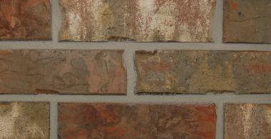 The Blend 22 King brick, manufactured by Commercial Brick Company (CBC) is a extruded Brick and brown in colour with a heavy texture with face creases/dimpled, hearting, white powder flash, flashed, tumbled, orange shading, slurry (white coating) and tan/gray shading.