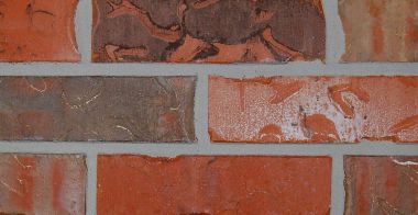 The Blend 30 King brick, manufactured by Commercial Brick Company (CBC) is a extruded Brick and red in colour with a heavy texture with face creases/dimpled, slurry (white coating), tan/gray shading, hearting, tumbled, flashed and orange shading.