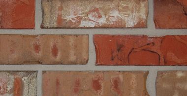 The Blend 77 King brick, manufactured by Commercial Brick Company (CBC) is a extruded Brick and red in colour with a heavy texture with face creases/dimpled, slurry (white coating), tan/gray shading, hearting, white powder flash, flashed, tumbled and orange shading.