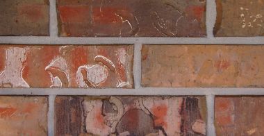 The Blend 85 King brick, manufactured by Commercial Brick Company (CBC) is a extruded Brick and red in colour with a heavy texture with orange shading, hearting, tumbled, flashed, white powder flash, face creases/dimpled, slurry (white coating) and tan/gray shading.
