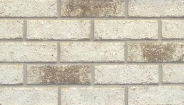 The Madison Modular brick, manufactured by Hebron Brick Company is a extruded Brick and white in colour with a light texture with face creases/dimpled, white powder flash, tan/gray shading, flashed and slurry (white coating).