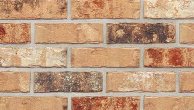 The Prairie Common Modular brick, manufactured by Hebron Brick Company is a extruded Brick and buff in colour with a heavy texture with slurry (white coating), face cracks, flashed, uneven side edges, spots, face creases/dimpled, tumbled and hearting.