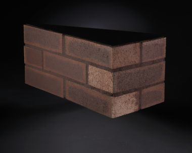 The Colonial Brown Blend 440 Vee Thin Modular Corner brick, manufactured by Marion Ceramics is a extruded Brick and brown in colour with a light texture with flashed, burgundy shading, hearting and velour / wirecut face.