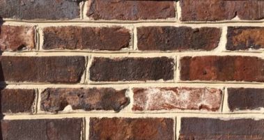 The Pearl River Modular brick, manufactured by Ragland Brick is a extruded Brick and brown in colour with a heavy texture with face creases/dimpled, slurry (white coating), hearting, flashed and tumbled.
