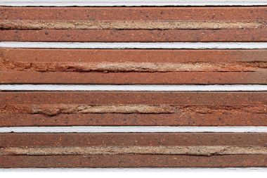 The 470-479 Medium Range Ironspot Shadow-Tex Roman brick, manufactured by Belden Brick is a extruded Brick and red in colour with a heavy texture with iron spots, flashed, orange shading and rock face/split face.