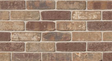 The Embarcadero Utility Thin Standard brick, manufactured by Mcnear Brick & Block is a extruded Brick and brown in colour with a light texture with tumbled, face creases/dimpled, hearting, spots, face cracks, flashed, speckles, uneven side edges, fine sand and slurry (white coating).