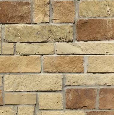 Thin stone veneer is easy to install and usable for interior or exterior designs. Real stone has its own unique characteristics with natural tones and hues. This stone has various shades of tan, accented with chocolate tones. Natural stone is durable and has been used for centuries. Square and rectangle sizes of 4, 6, and 8 inches with sawn top and bottom edges and natural ends. Manufacturer calculations are based on installation with a 3/8" mortar joint.