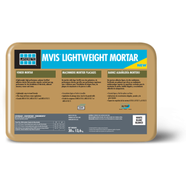 MVIS Lightweight Mortar is a lightweight, high performance multi-use, polymer fortified adhesive mortar. MVIS Lightweight Mortar offers tremendous utility including non-sag wall installations. Incredible non-sag performance, including large and/or heavy thin brick, stone, masonry veneer, or tile.